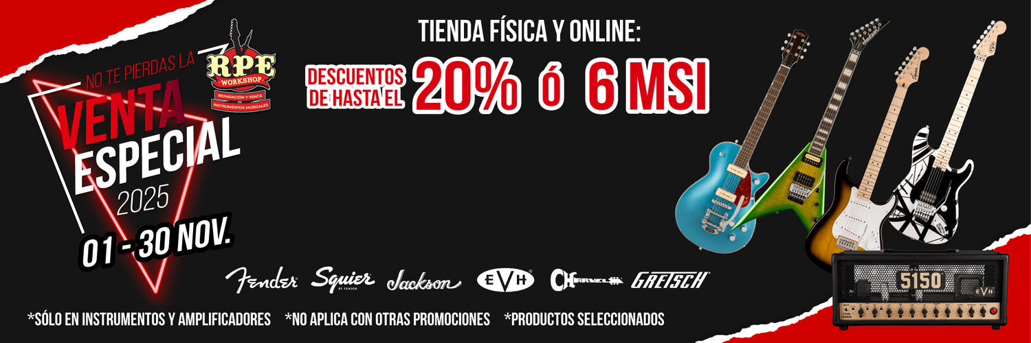 Bienvenidos a la nueva tienda online de RPE Workshop. Somos una empresa hecha por músicos para músicos. Desde el 2010 somos el mejor centro de servicio de instrumentos musicales en la zona del bajío y orgullosamente somos un Centro de Servicio Autorizado Fender. Estamos ubicados en la Ciudad de Irapuato, Gto. México. En el año 2017 incursionamos en la venta de instrumentos musicales y desde 2018 contamos con una tienda en línea para mayor comodidad de nuestros clientes.